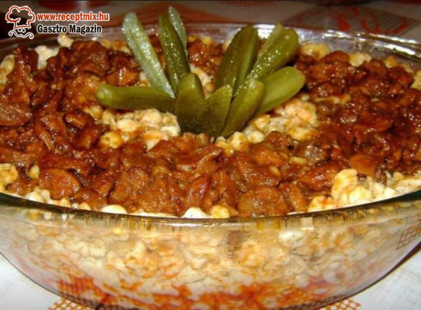 Husi szaftos, tészta, sajt