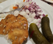 Zöldbab főzelék, sült virslivel és a tükörtojás
