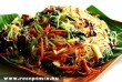 Kevés olajon megpirítjuk a vékony csíkokra vágott bacont, majd hozzáadjuk a feldarabolt hagymát. Kb. 3-4 percig együtt pároljuk. A többi zöldséget vékony csíkokra vágjuk, és azt is az előzőekhez adom. Sózzuk, borsozzuk, kevéske csilivel ízesítjük, majd lefedve puhára pároljuk. 4 réteslapot úgy fektetünk egymásra, hogy egyenként mindegyiket lekenjük tejfölben elkevert olajjal, hogy ne száradjanak ki sütés közben. A teljesen kihűlt zöldséges tölteléket egy csíkban a réteslap felénk eső oldalára kanalazzuk, majd egy nedves konyharuha segítségével feltekerjük.