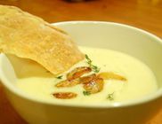 A megpucolt vöröshagymát kezjük el olajon pirítani majd adjuk hozzá a megtisztított összemorzsolt fokhagymákat és ezt is pirítsuk egy picit. Vegyük le a tűzről és óvatosan keverjük bele a lisztet. Öntsük fel 1/2 liter vízzel (aki hígabban szereti, az önthet hozzá több vizet is) és adjuk hozzá a tejszínt és a fűszereket. Nem baj ha csomós úgy is össze fogjuk turmixolni. Ha jól összeforrt a leves jöhet a turmix majd forraljuk fel utoljára is! Ízlés szerint még tehetünk bele reszelt sajtot is. Friss pirítós kenyér kockákat is tehetünk bele.