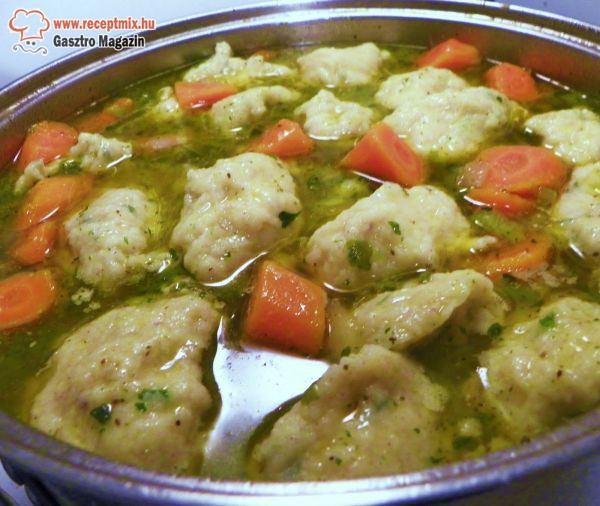 A leveshez a zöldséget megtisztítjuk, kockára vágjuk, majd kevés zsiradékon kicsit megpároljuk. Párolás után vízzel felöntjük, ízlés szerint fűszerezzük. Közben a gombóchoz a burgonyát feltesszük főni, ha megpuhult, leszűrjük, és hagyjuk kihűlni. 10 perc múlva már lehet is a gombócot készíteni. Összetörjük villával, majd a tojással, kevés fűszerrel és annyi liszttel, amennyit felvesz összekeverni. Ha a levesben a zöldségek megfőttek, vizes kézzel kicsi gombócokat formálunk a krumplis tésztából, beletesszük a levesbe, és ha feljön a tetejére, kész is a levesünk.