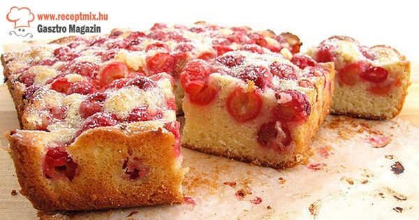 A sütőt előmelegítjük 175 fokra. A cseresznyét egyenletesen elosztjuk egy vajjal kikent szögletes formában vagy sütőtálban. A tojásokat feltörjük, majd habosra keverjük a cukorral. Beleszitáljuk a lisztet, majd hozzáadjuk a sót is. Ezután beledolgozzuk a tejfölt, a tejet, a vaníliás cukrot és az olvasztott vajat. Az így kapott jól eldolgozott híg masszát a cseresznyére öntjük. Körülbelül 40-50 percig sütjük, majd hűlni hagyjuk. Ha kihűlt, a tetejére porcukrot szórhatunk, majd felkockázzuk és már fogyaszthatjuk is. Gyors és könnyen elkészíthető finomság.