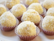 A lisztet a tejjel csomómentesre keverjük, hozzáadjuk a cukrot, a vaníliás cukrot és sűrűre főzzük. Ha langyosra hűlt, beledolgozzuk a margarint és a kókuszreszeléket és teljesen kihűtjük. Vizes kézzel kis golyókat formázunk belőle, közepébe mogyorót nyomunk és kókuszreszelékbe forgatjuk. Hozzávalók: 3 evőkanál liszt, 3 dl tej, 1 tasak vaniliáscukor, 5 evőkanál cukor, 15 dkg kókuszreszelék, 10 dkg margarin, beforgatni 5 dkg kókuszreszelék, közepébe földimogyoró. (De készíthetjük a közepében mandulával is.)