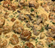 A tejfölt keverjük simára a tojással, ízlés szerint tehetünk bele 1 kis kanál fűszerpaprikát is. A tejföllel kenjük meg a húst. Tegyük 175°C-ra előmelegített sütőbe és süssük készre 30 perc alatt.