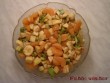Nagyságtól függően három - négy medvehagyma-levelet finomra vágunk, a petrezselymet felaprítjuk. A tojásokat tíz perc alatt keményre főzzük. Közben megtisztítjuk a sárgarépát, majd lereszeljük őket. A retket tisztítást követően hajszálvékony szeletekre vágjuk. A főtt tojásokat gyorsan hideg vízbe helyezzük, langyos állapotukba megszabadítjuk mindegyiket a héjától, majd félbevágjuk őket. A tojások keményre főtt sárgáját egy közepes keverőtálba rakosgatjuk, a félbevágott fehérjéket pedig egy másik lapos tálra.
