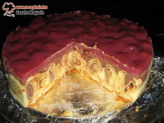 Egy 26 cm-es kapcsos tortaformát folpackkal kibélelünk. A kávét rumaromával összekeverjük. A babapiskótákat megmártogatjuk a rumaromás kávéban. A forma alját kirakjuk babapiskótával, hogy ne legyen hézag közötte. A vaniliapudingot megfőzzük 3 evk cukorral, fél liter tejben és a babapiskótára tesszük. Palacsintákat megtöltjük kakaóporral, összetekerjük, majd csigaformába fölhajtjuk, a puding tetejére tesszük, kívülről haladunk befelé. Csoki pudingot megfőzzük 3 evk cukorral, fél liter tejben-palacsinta tetejére tesszük. Meggyet lecsöpögtettjük csoki pudingra tesszük,megszórjuk fahéjjal.Meggylevet,felfőzzük 1 evk cukorral a puncs pudinggal,meggy tetejére öntjük. Hűtőben hűtsük.